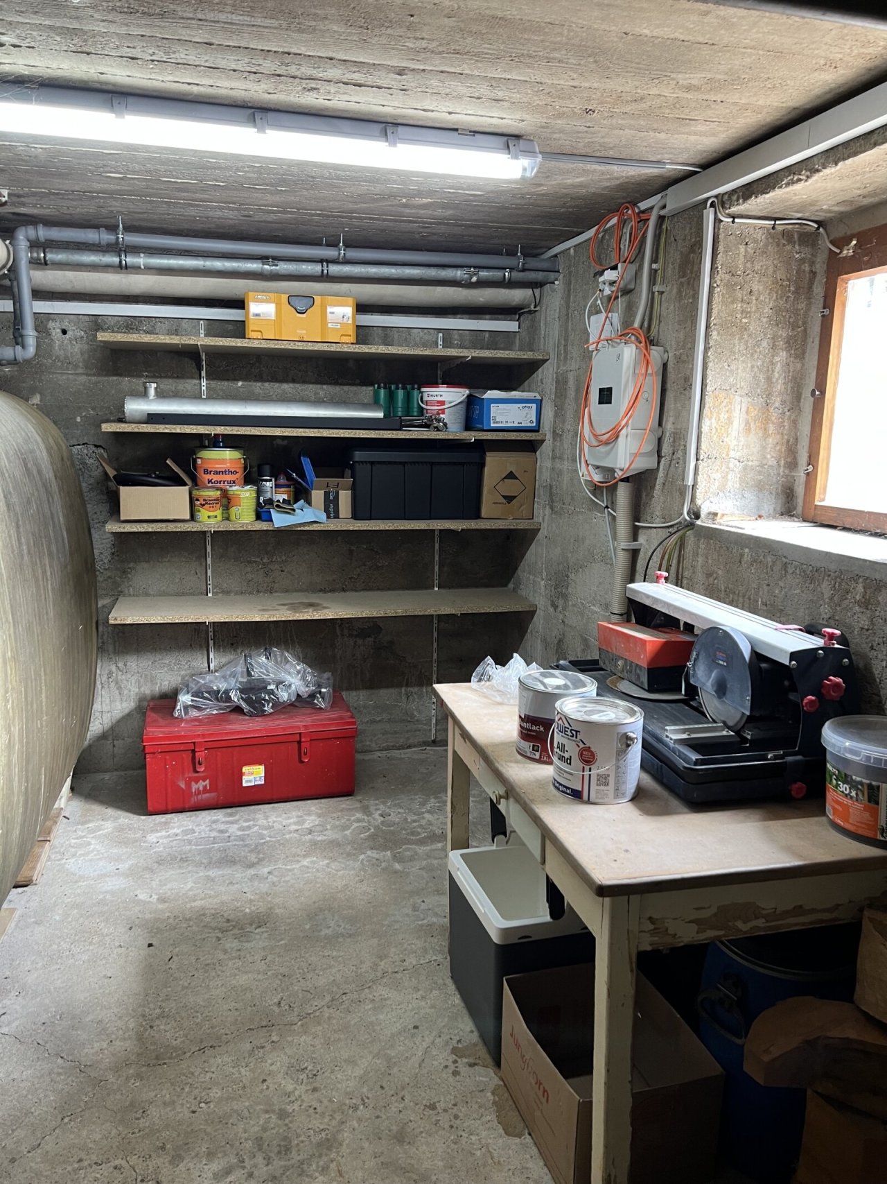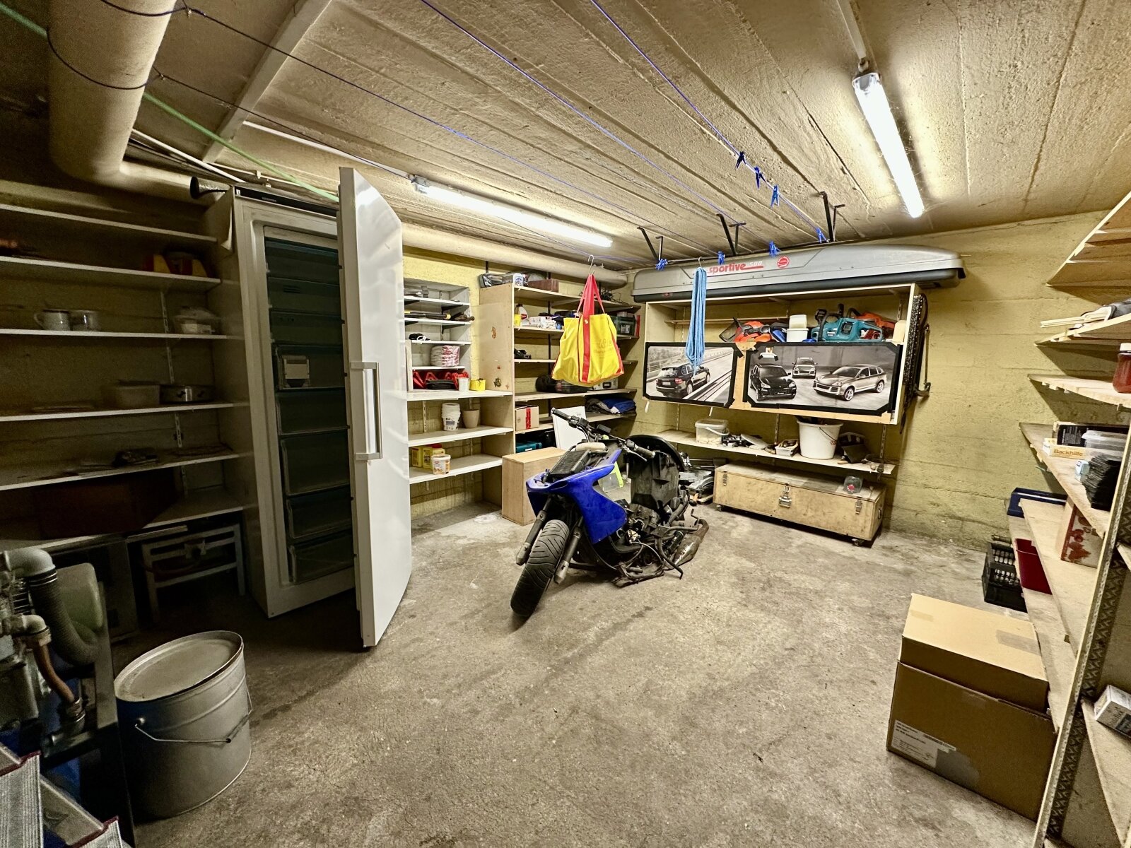 Im Keller befinden sich 3 zur Wohnung gehörende Abstellräume mit jeweils 10/18/15 m². Dazu ist dort noch ein gemeinschaftlich genutzter Raum für Waschmaschinen und im Heizungsraum bietet es ebenso einen gemeinschaftlichen Abstellplatz.