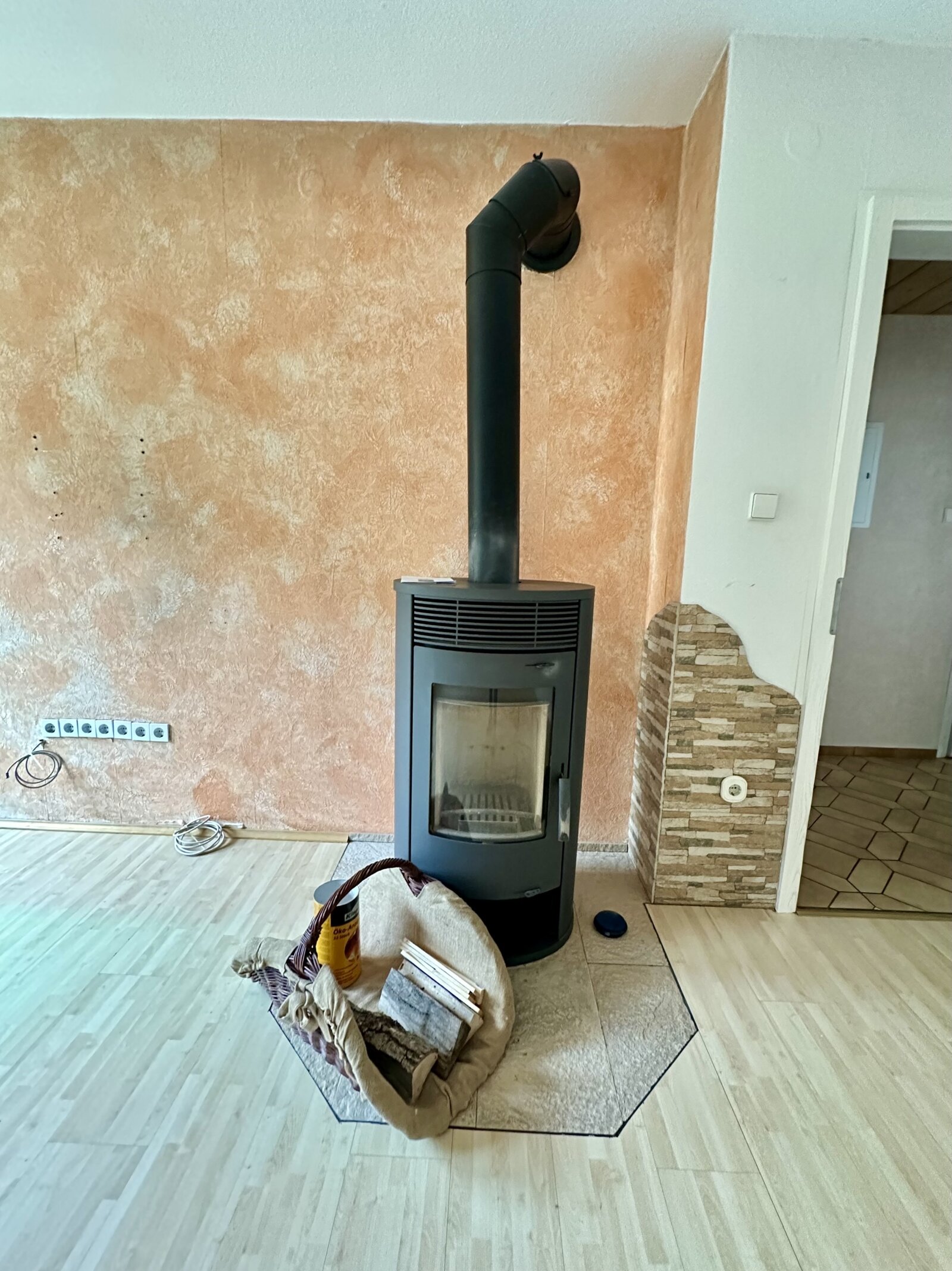 Im geräumigen Wohnzimmer ist ein Kaminofen eingebaut, dieser ist rechtlich noch zugelassen.