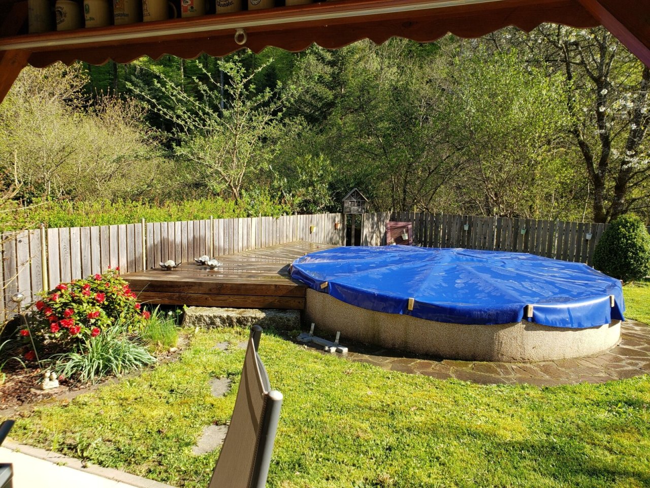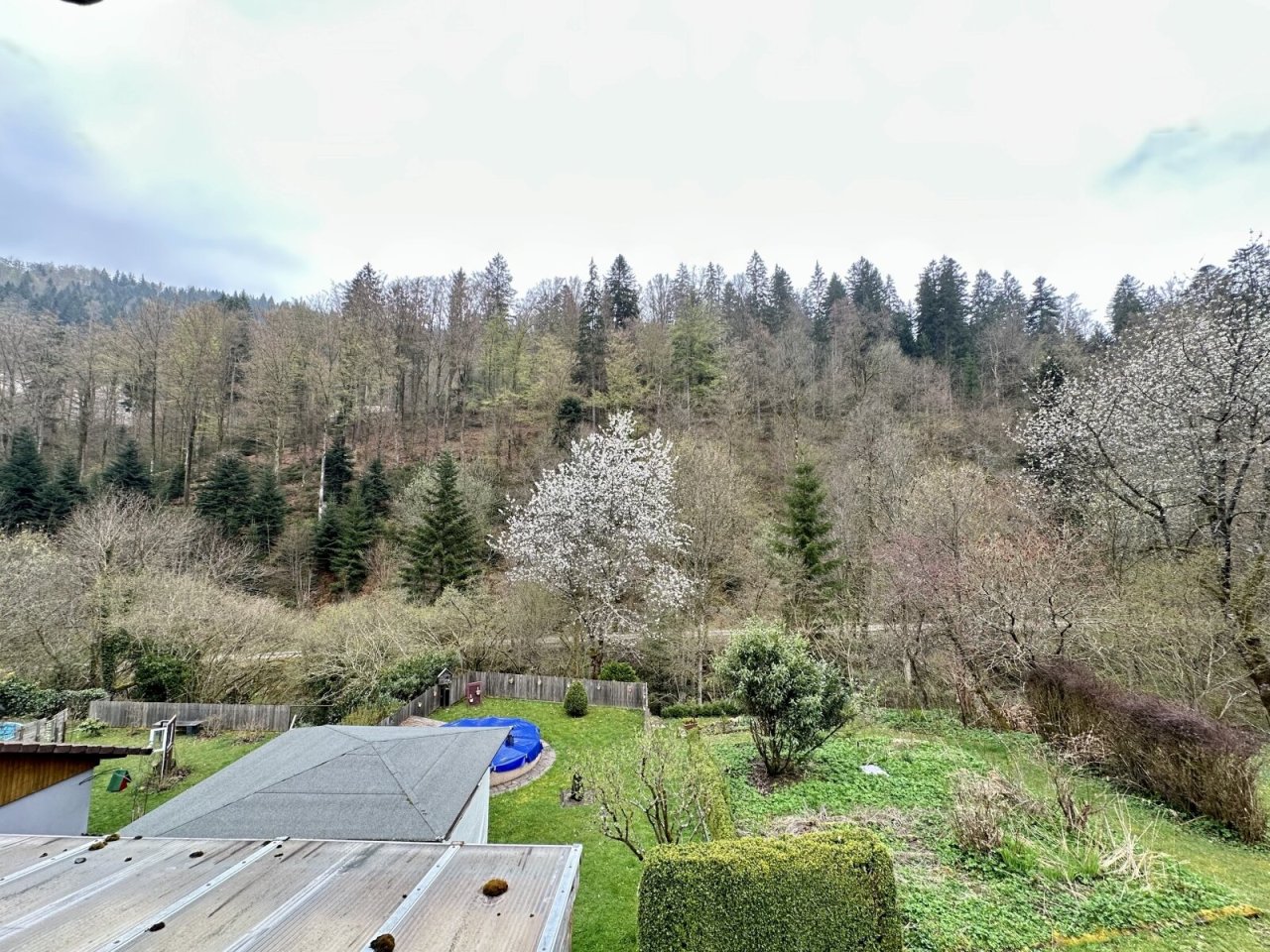 Die Wohnung befindet sich im OG eines Zweifamilienhauses. Das Grundstück hat eine Größe von 300m², welches zur Wohnung alleine gehört. Im sehr gepflegten Garten stehen neben einem Pavillon auch ein Pool und präsentieren den Garten absolut einladend. Von hier aus hat man einen Zugang zum Bach - Raumünzach, dahinter beginnt der Wald mit Wandermöglichkeiten.