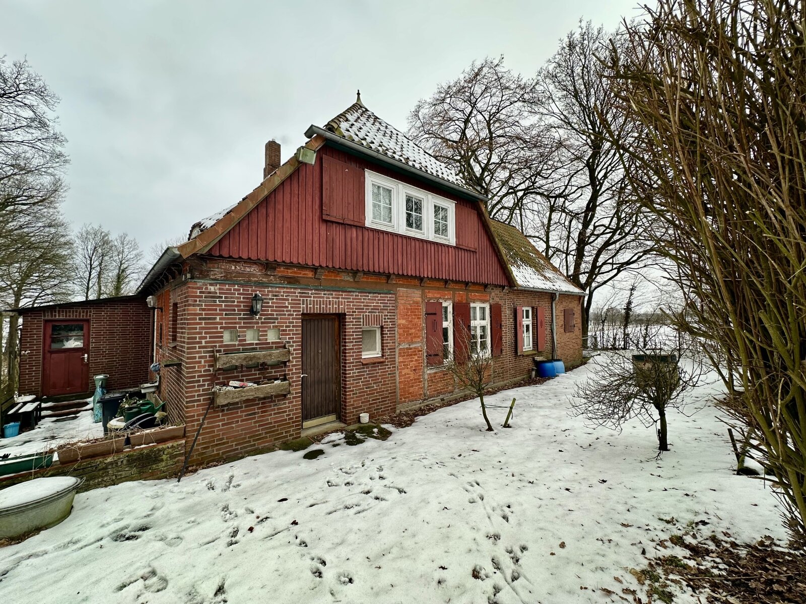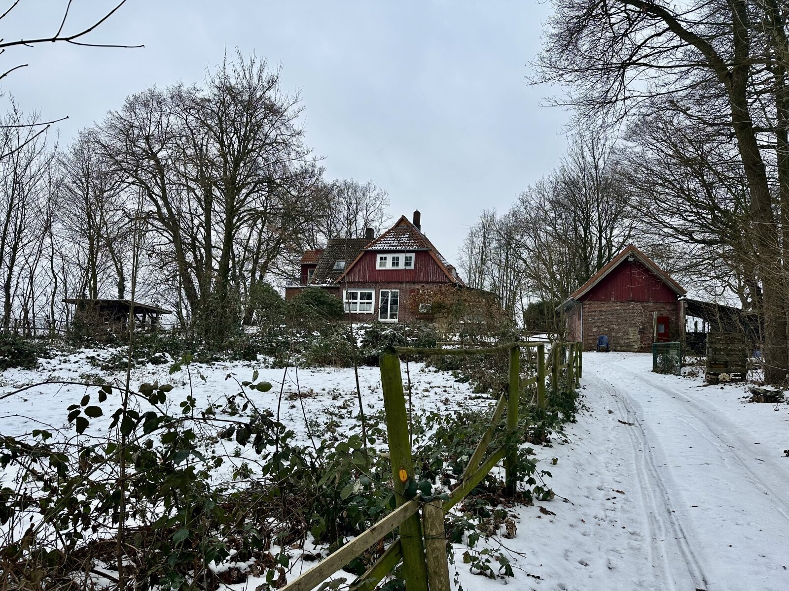 Vor dem Haus befindet sich eine Wiese, hinter dem Haus war ursprünglich ein Sandplatz eingerichtet.