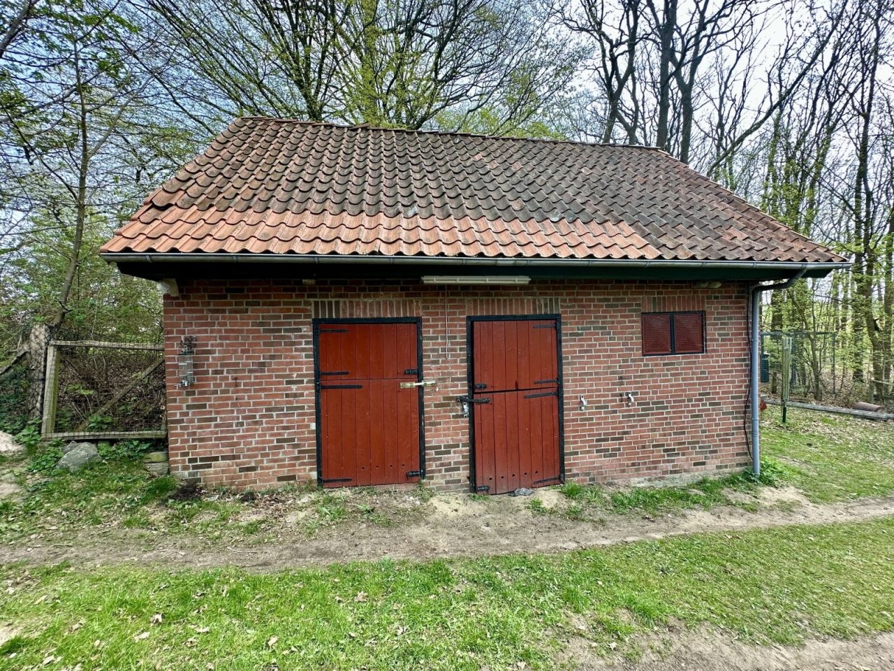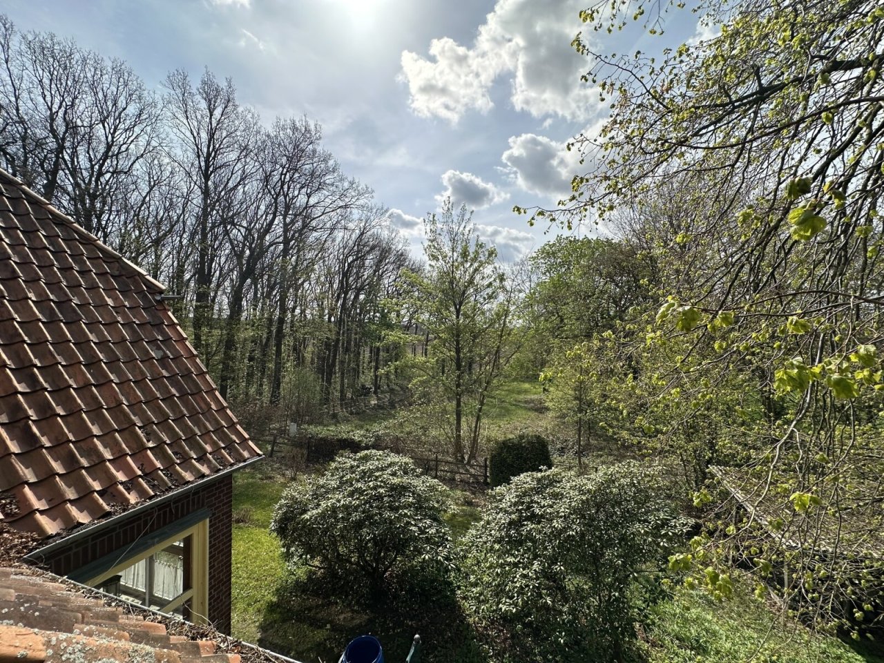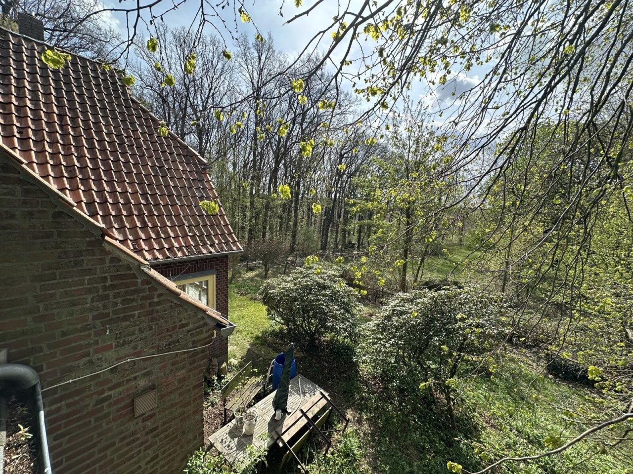 Auf dem Grundstück befindet sich eine kleine Wiese, ein kleiner Buchenwald und hinter dem Haus ist ein ehemaliger Sandplatz inzwischen eingewachsen.