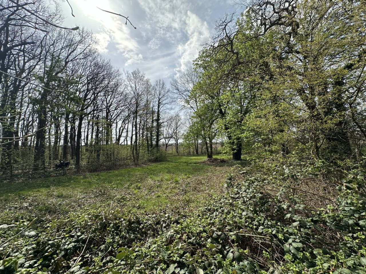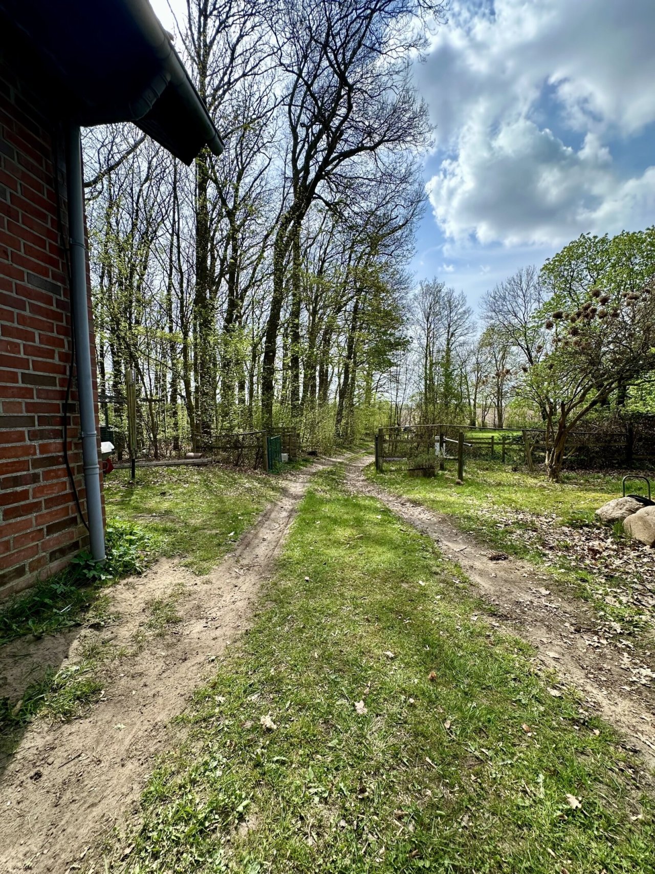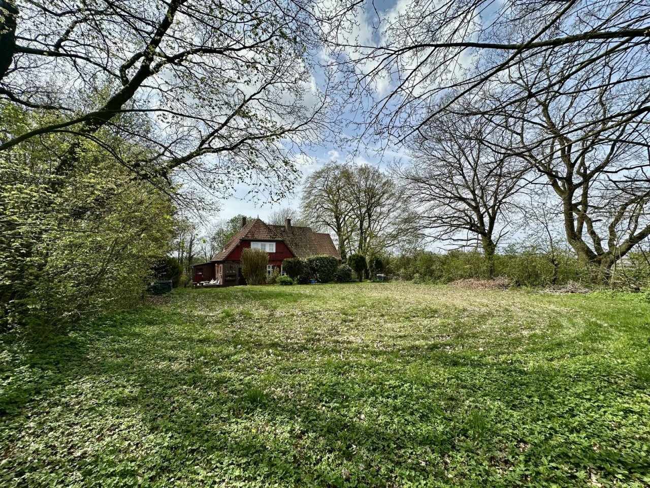 Auf dem Grundstück befindet sich eine kleine Wiese, ein kleiner Buchenwald und hinter dem Haus ist ein ehemaliger Sandplatz inzwischen eingewachsen.